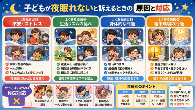 あなたも「子ども 眠れない 原因」で悩んでいませんか?毎晩、子どもがなかなか眠りにつけずに苦しんでいる姿を見て、どうしたら良いのかと悩んでいる親御さんは多いのではないでしょうか。特に、いつもは元気いっぱいの子どもが「眠れない」と訴えると、心...